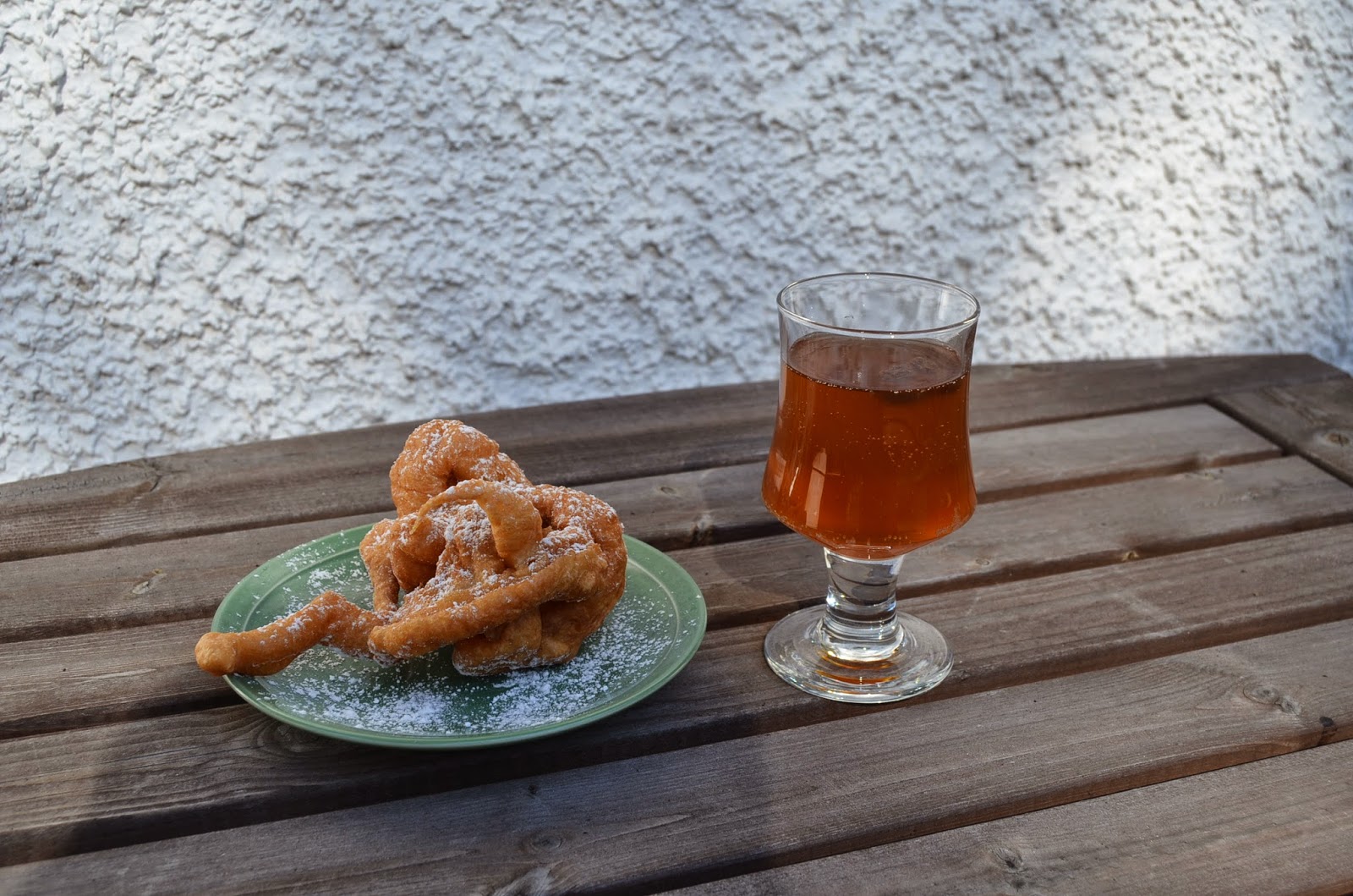 Jag körde plastpåsetricket igen. Dit med smeten, klippte ett litet hål (som blev för stort), värmde två liter olja och startade friteringen. Sakta men säkert hade jag tjugo mycket fula struvor på brickan. Hålet var som nämnts för stort och de fina ringlande struvsnörena blev till fingertjocka ormar.